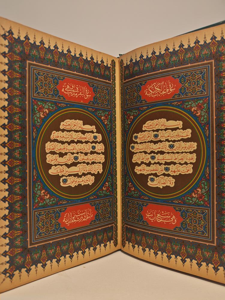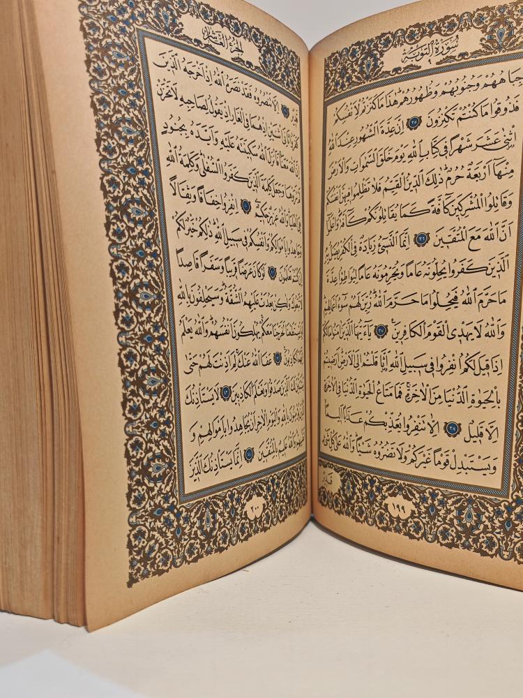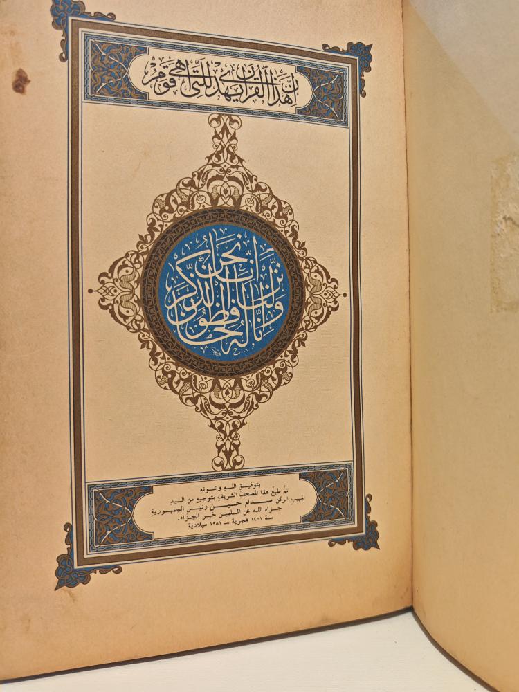 نسخة فريدة ونادرة من المصحف الشريف تم طبعها بتوجيه مباشر من رئيس الجمهورية العراقية الأسبق صدام حسين عام 1401 هـ